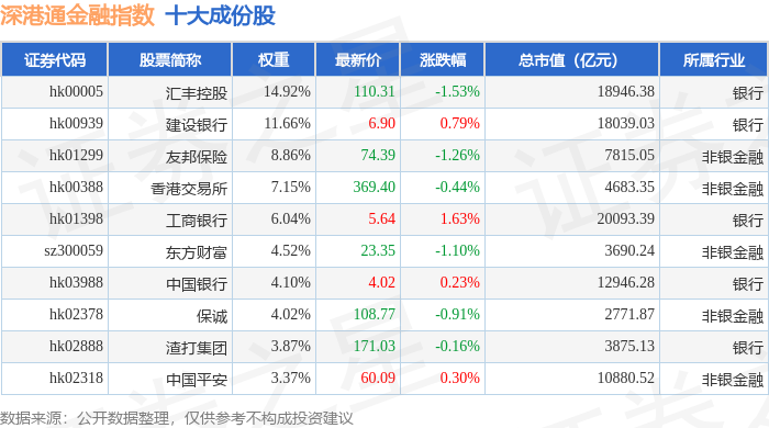 深港通金融(983025)指数十大成份股详情如下: