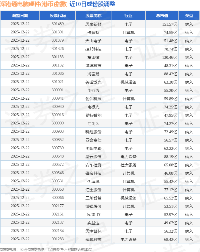 近10日内深港通电脑硬件(港币)(983044)指数成份股做了调整,新纳入了27只股票。