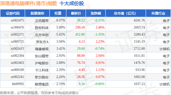 深港通电脑硬件(港币)(983044)指数十大成份股详情如下: