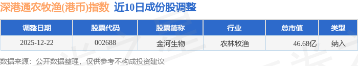 近10日内深港通农牧渔(港币)(983052)指数成份股做了调整,新纳入了1只股票。