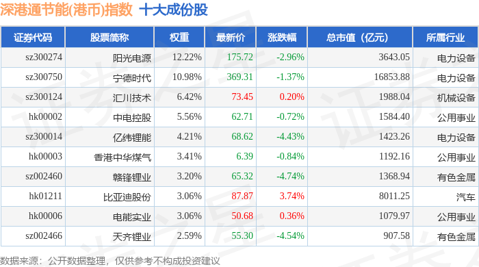 深港通节能(港币)(983086)指数十大成份股详情如下: