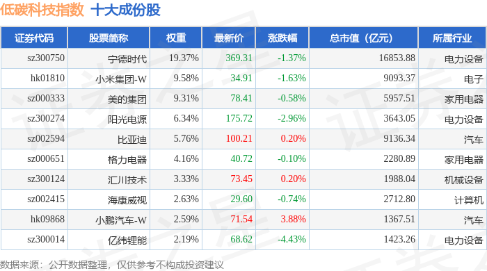 低碳科技(983160)指数十大成份股详情如下: