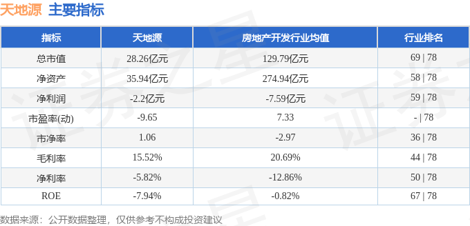 天地源2025年三季报显示,前三季度公司主营收入28.77亿元,同比上升10.92%;归母净利润-2.2亿元,同比下降318.72%;扣非净利润-2.37亿元,同比下降2626.23%;其中2025年第三季度,公司单季度主营收入4.16亿元,同比下降25.0%;单季度归母净利润-9516.43万元,同比下降173.75%;单季度扣非净利润-9694.88万元,同比下降233.96%;负债率85.82%,投资收益-628.66万元,财务费用2.6亿元,毛利率15.52%。天地源(600665)主营业务:主要从事房地产开发与经营业务。