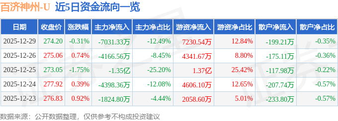 证券之星消息,截至2025年12月29日收盘,百济神州(688235)报收于274.2元,下跌0.31%,换手率1.78%,成交量2.05万手,成交额5.63亿元。