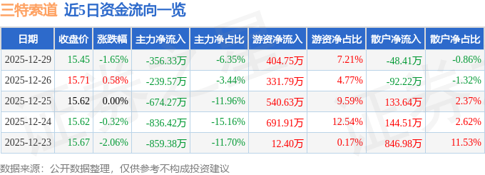 12月29日的资金流向数据方面,主力资金净流出356.33万元,占总成交额6.35%,游资资金净流入404.75万元,占总成交额7.21%,散户资金净流出48.41万元,占总成交额0.86%。