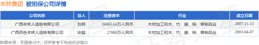 丰林集团12月26日披露2笔对外担保,被担保公司2家。对外担保明细如下表: