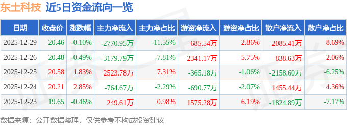 证券之星消息,截至2025年12月29日收盘,东土科技(300353)报收于20.46元,下跌0.1%,换手率2.18%,成交量11.72万手,成交额2.4亿元。