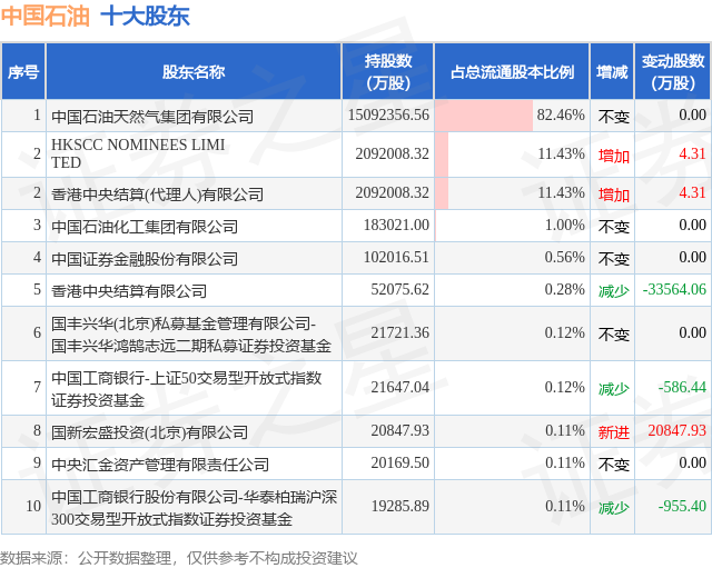 根据中国石油2025年三季报公布的十大股东详情如下: