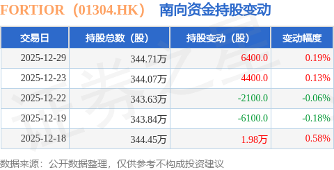 证券之星消息,12月29日南向资金增持6400.0股FORTIOR(01304.HK)。近5个交易日中,获南向资金增持的有3天,累计净增持2.24万股。近20个交易日中,获南向资金减持的有8天,累计净减持1.12万股。截至目前,南向资金持有FORTIOR(01304.HK)344.71万股,占公司已发行普通股的15.98%。