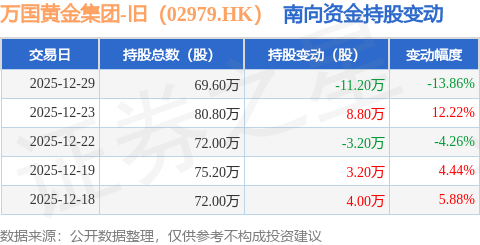 证券之星消息,12月29日南向资金减持11.2万股万国黄金集团-旧(02979.HK)。近5个交易日中,获南向资金增持的有3天,累计净增持1.6万股。近20个交易日中,获南向资金增持的有7天,累计净增持69.6万股。截至目前,南向资金持有万国黄金集团-旧(02979.HK)69.6万股,占公司已发行普通股的0.0%。