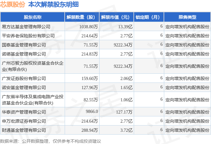 证券之星消息,根据市场公开信息整理,芯原股份(688521)于12月30日将有2486.04万股限售股份解禁,为公司定向增发机构配售股份,占公司总股本4.73%。(本次数据根据历史公告整理得出,实际情况以上市公司最新公告为准)最近一年内,该股累计解禁258.19万股,占总股本的0.49%。本次解禁后,公司已无限售股份。具体如下图所示: