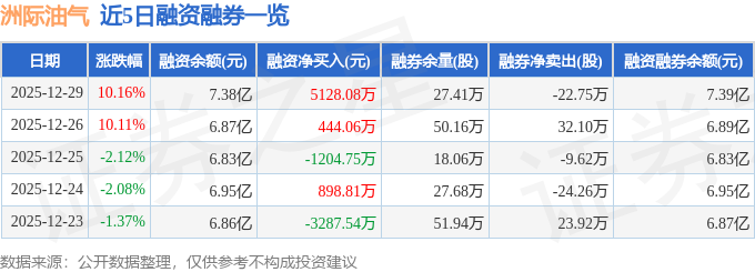 证券之星消息,截至2025年12月29日收盘,洲际油气(600759)报收于3.36元,上涨10.16%,已连续涨停2天,换手率11.55%,成交量478.77万手,成交额15.8亿元。