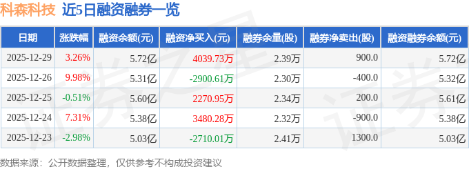 证券之星消息,截至2025年12月29日收盘,科森科技(603626)报收于17.75元,上涨3.26%,换手率22.69%,成交量125.9万手,成交额21.62亿元。
