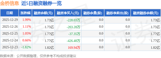 金桥信息融资融券信息显示,融资方面,当日融资买入1258.09万元,融资偿还1486.12万元,融资净偿还228.03万元。融券方面,融券卖出0.0股,融券偿还0.0股,融券余量0.0股,融券余额0.0万元。融资融券余额1.73亿元。
