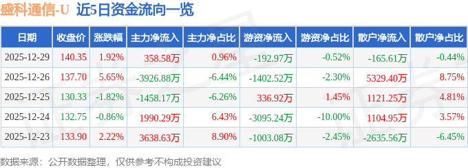 证券之星消息,截至2025年12月29日收盘,盛科通信(688702)报收于140.35元,上涨1.92%,换手率1.31%,成交量2.67万手,成交额3.72亿元。
