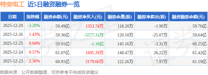 特变电工融资融券信息显示,融资方面,当日融资买入5.62亿元,融资偿还5.49亿元,融资净买入1353.74万元。融券方面,融券卖出1.42万股,融券偿还3.32万股,融券余量118.2万股,融券余额2684.26万元。融资融券余额59.76亿元。