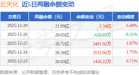 证券之星消息,12月29日,云天化(600096)融资买入3.48亿元,融资偿还2.14亿元,融资净买入1.34亿元,融资余额21.94亿元,当日融资净买入排名第30。