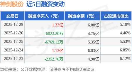 证券之星消息,12月29日,神剑股份(002361)融资买入3.03亿元,融资偿还1.71亿元,融资净买入1.33亿元,融资余额6.08亿元,当日融资净买入排名第32。