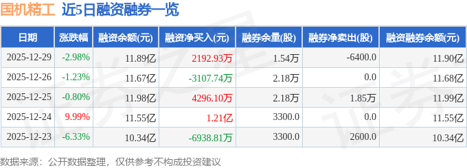 国机精工融资融券信息显示,融资方面,当日融资买入1.82亿元,融资偿还1.6亿元,融资净买入2192.93万元。融券方面,融券卖出9500.0股,融券偿还1.59万股,融券余量1.54万股,融券余额65.74万元。融资融券余额11.9亿元。