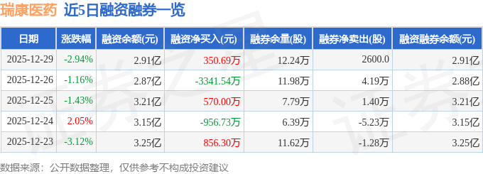 证券之星消息,截至2025年12月29日收盘,瑞康医药(002589)报收于3.3元,下跌2.94%,换手率7.29%,成交量99.62万手,成交额3.3亿元。