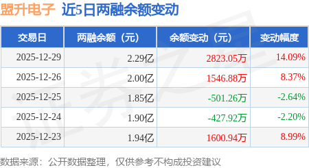 证券之星消息,12月29日,盟升电子(688311)融资买入8934.44万元,融资偿还6111.39万元,融资净买入2823.05万元,融资余额2.29亿元,近20个交易日中有12个交易日出现融资净买入。