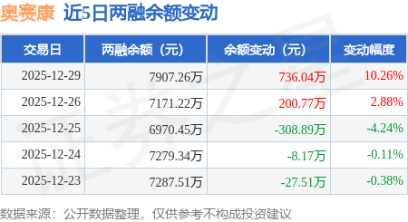证券之星消息,12月29日,奥赛康(002755)融资买入1436.06万元,融资偿还699.98万元,融资净买入736.08万元,融资余额7905.47万元。