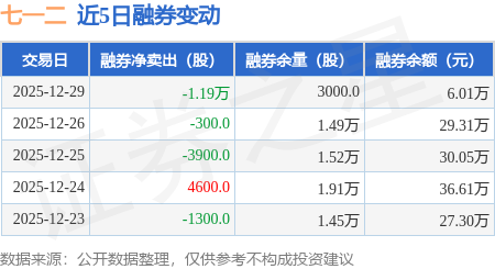 证券之星消息,12月29日,七一二(603712)融资买入3599.3万元,融资偿还3282.28万元,融资净买入317.02万元,融资余额4.32亿元,近20个交易日中有11个交易日出现融资净买入。
