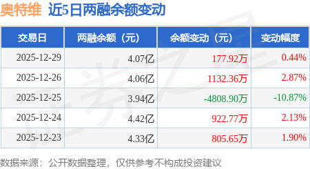 证券之星消息,12月29日,奥特维(688516)融资买入3353.49万元,融资偿还3195.0万元,融资净买入158.49万元,融资余额4.06亿元。