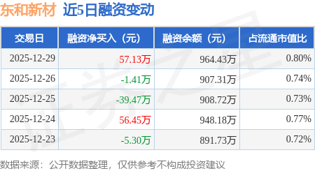 证券之星消息,12月29日,东和新材(920792)融资买入82.66万元,融资偿还25.54万元,融资净买入57.13万元,融资余额964.43万元。