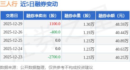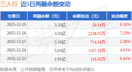 证券之星消息,12月29日,三人行(605168)融资买入4038.28万元,融资偿还3992.3万元,融资净买入45.98万元,融资余额3.32亿元,近3个交易日已连续净买入累计2998.86万元,近20个交易日中有14个交易日出现融资净买入。