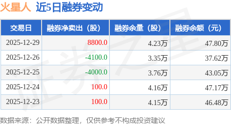 证券之星消息,12月29日,火星人(300894)融资买入331.44万元,融资偿还291.54万元,融资净买入39.9万元,融资余额1.43亿元。