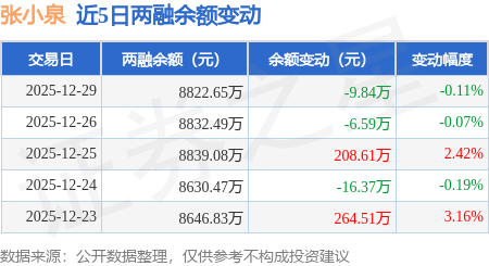 证券之星消息,12月29日,张小泉(301055)融资买入246.37万元,融资偿还256.54万元,融资净卖出10.17万元,融资余额8791.19万元。
