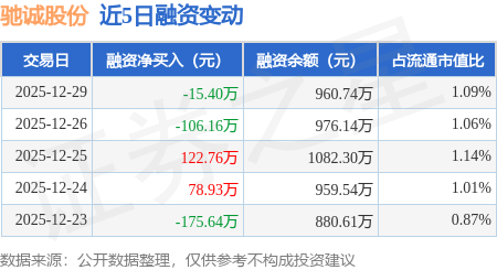 证券之星消息,12月29日,驰诚股份(920407)融资买入96.9万元,融资偿还112.29万元,融资净卖出15.4万元,融资余额960.74万元。