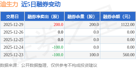 证券之星消息,12月29日,迪生力(603335)融资买入175.69万元,融资偿还192.49万元,融资净卖出16.81万元,融资余额1.32亿元。
