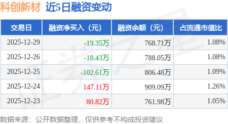 证券之星消息,12月29日,科创新材(920580)融资买入208.15万元,融资偿还227.5万元,融资净卖出19.35万元,融资余额768.71万元,近20个交易日中有13个交易日出现融资净买入。
