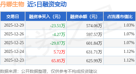 证券之星消息,12月29日,丹娜生物(920009)融资买入60.06万元,融资偿还83.57万元,融资净卖出23.51万元,融资余额574.06万元。