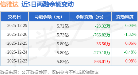 证券之星消息,12月29日,信雅达(600571)融资买入2169.54万元,融资偿还2193.37万元,融资净卖出23.83万元,融资余额5.72亿元。