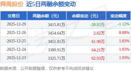 证券之星消息,12月29日,舜禹股份(301519)融资买入118.17万元,融资偿还157.01万元,融资净卖出38.83万元,融资余额3415.67万元,近20个交易日中有12个交易日出现融资净买入。