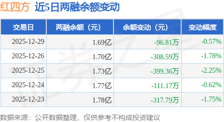 证券之星消息,12月29日,红四方(603395)融资买入582.43万元,融资偿还682.6万元,融资净卖出100.17万元,融资余额1.69亿元。
