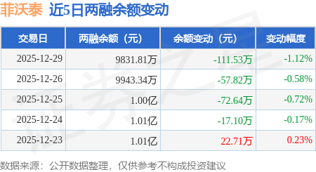 证券之星消息,12月29日,菲沃泰(688371)融资买入313.54万元,融资偿还425.0万元,融资净卖出111.46万元,融资余额9823.53万元。