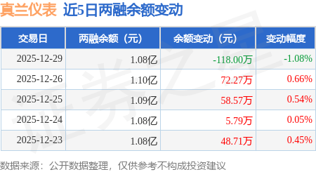 证券之星消息,12月29日,真兰仪表(301303)融资买入208.55万元,融资偿还326.55万元,融资净卖出118.0万元,融资余额1.08亿元。