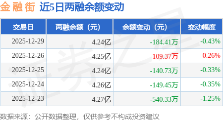 证券之星消息,12月29日,金 融 街(000402)融资买入586.88万元,融资偿还770.68万元,融资净卖出183.8万元,融资余额4.23亿元。