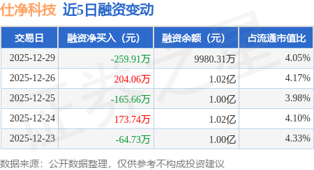 证券之星消息,12月29日,仕净科技(301030)融资买入319.9万元,融资偿还579.81万元,融资净卖出259.91万元,融资余额9980.31万元。