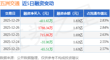证券之星消息,12月29日,五洲交通(600368)融资买入2724.05万元,融资偿还3135.7万元,融资净卖出411.65万元,融资余额1.83亿元,近20个交易日中有11个交易日出现融资净买入。