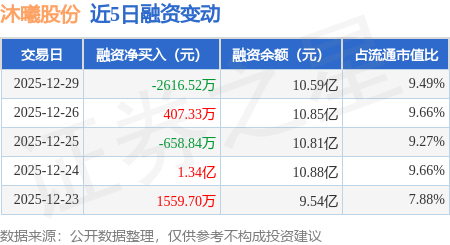证券之星消息,12月29日,沐曦股份(688802)融资买入1.2亿元,融资偿还1.46亿元,融资净卖出2616.52万元,融资余额10.59亿元。