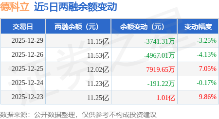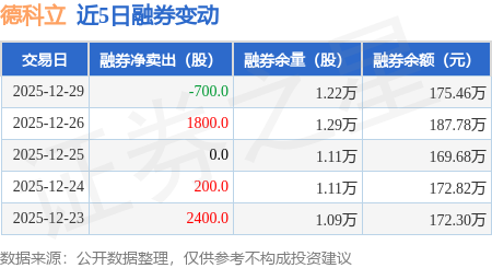 证券之星消息,12月29日,德科立(688205)融资买入1.59亿元,融资偿还1.96亿元,融资净卖出3728.98万元,融资余额11.14亿元。