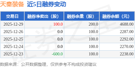 证券之星消息,12月29日,天秦装备(300922)融资买入1635.06万元,融资偿还1385.89万元,融资净买入249.17万元,融资余额1.45亿元,近3个交易日已连续净买入累计368.68万元,近20个交易日中有11个交易日出现融资净买入。