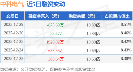 证券之星消息,12月29日,中科电气(300035)融资买入5702.15万元,融资偿还6577.84万元,融资净卖出875.69万元,融资余额10.8亿元。