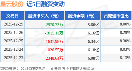 证券之星消息,12月29日,星云股份(300648)融资买入4881.02万元,融资偿还7851.75万元,融资净卖出2970.73万元,融资余额5.86亿元,近20个交易日中有13个交易日出现融资净买入。