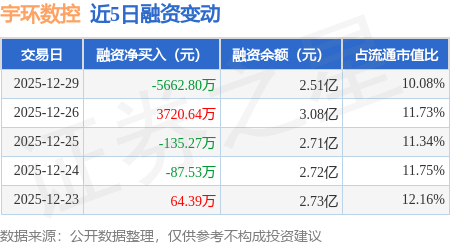 证券之星消息,12月29日,宇环数控(002903)融资买入4486.45万元,融资偿还1.01亿元,融资净卖出5662.8万元,融资余额2.51亿元。